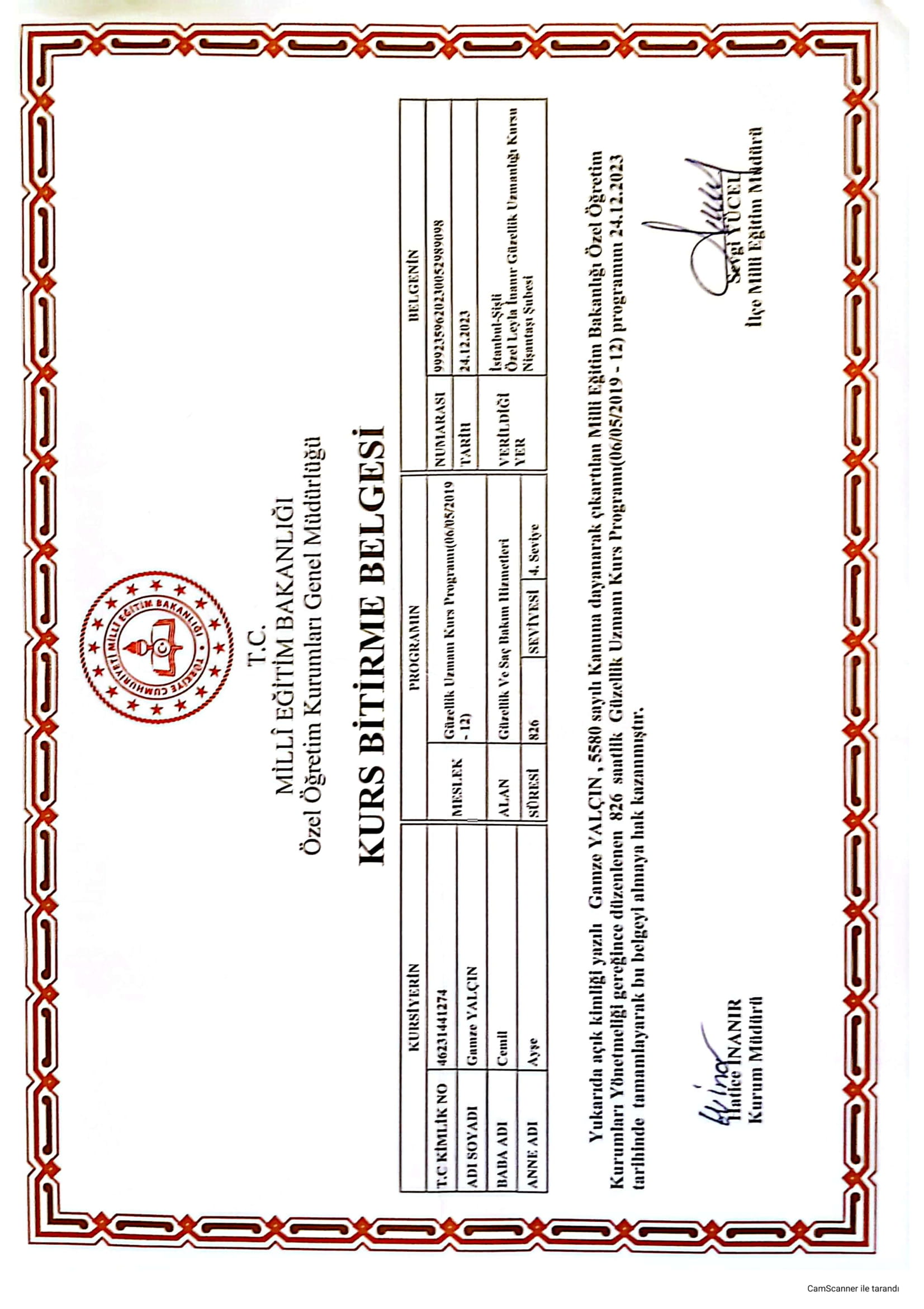 Gamze Yalçın Güzellik Uzmanlığı Belgesi